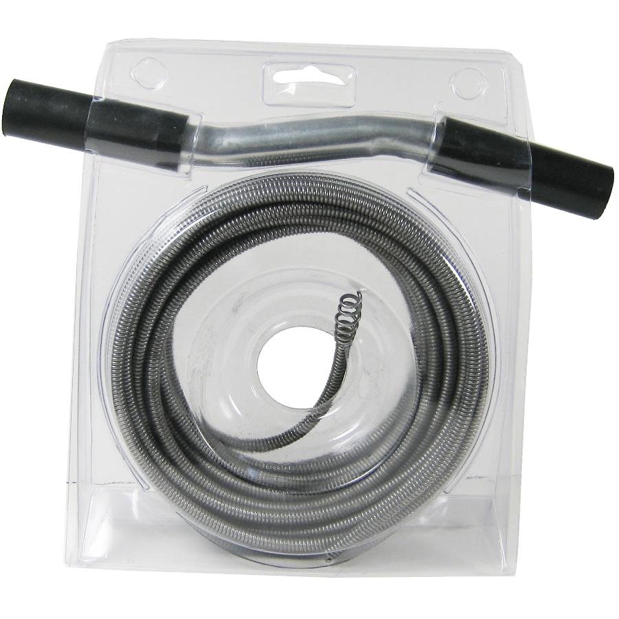 Assembled Product Length: 180" Assembled Product Height: 0.25" Assembled Product Width: 0.25" . Unclogs small and medium household drains Rust resistant high grade, high carbon round diameter spring steel wire Galvanized "torque-twist" steel handle Integrated corkscrew open-wound boring head High quality spring steel offers maximum flexibility for the tightest bends One-piece boring head quickly threads through strainer cross bars to offer maneuverability for clearing stubborn clogs Galvanized steel crank handle has unique high power "Torque Twist" design which provides maximum thrusting action even through strainer cross bars