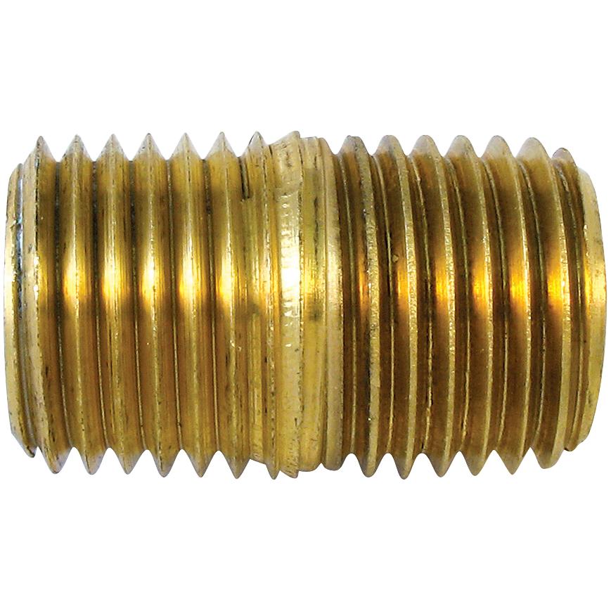 Fitting Type: NIPPLE Material: BRASS Assembled Product Length: N/A Assembled Product Height: 0.25" Assembled Product Width: 0.25" . May be used with brass, steel, iron and aluminum threaded pipe • Applications include: water, air, gas, oil and all liquid petroleum products