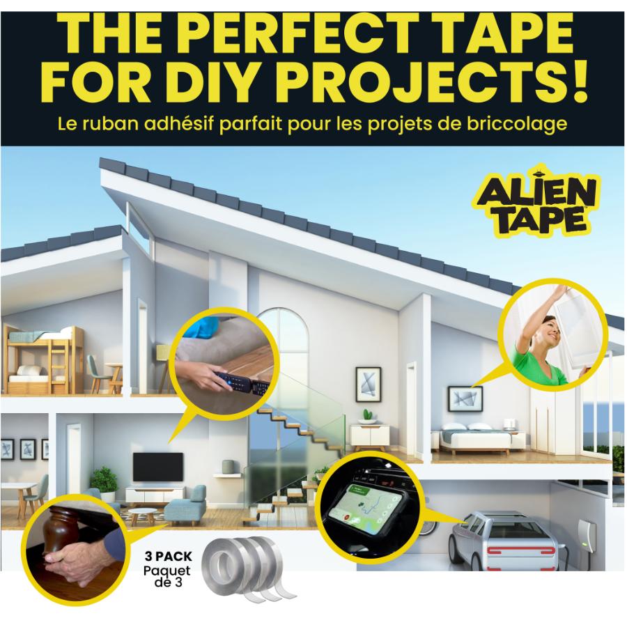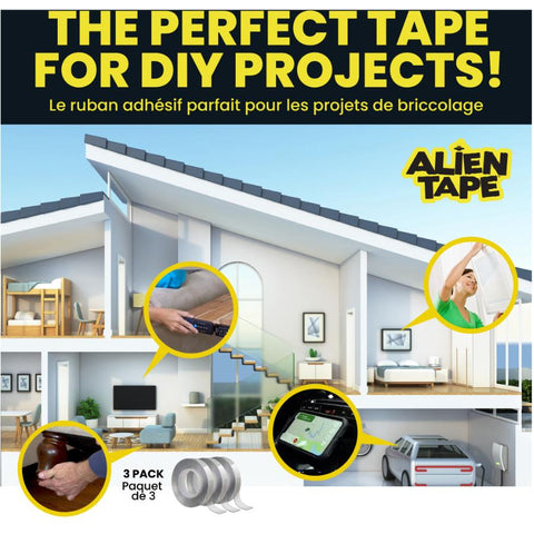 Alien Tape is your go-to product for when you need to keep furniture in place, hang shelves, or anything around the house. Alien Tape gives you the versatility of a tape with the stength of nails or glue. With three rolls totaling 30 feet, you'll have the ability to use and reuse this tape over and over again.