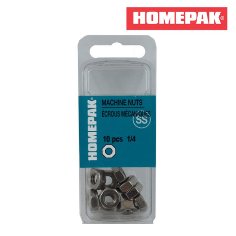 10 Pack 1/4"-20 18.8 Stainless Steel Machine Hex Nuts