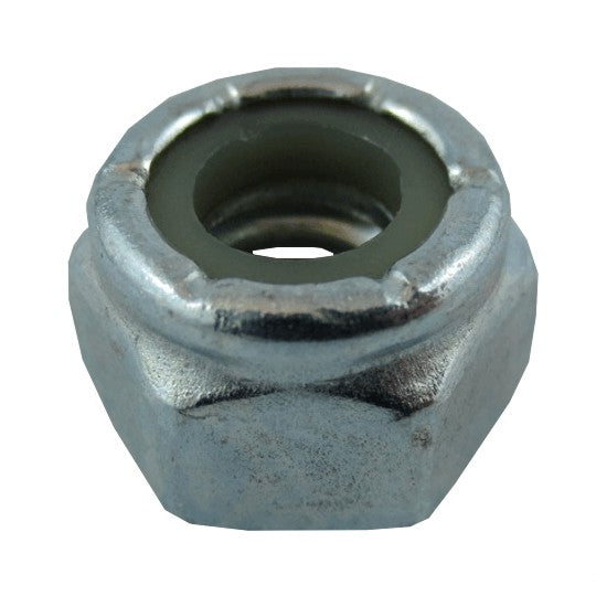 Material: STEEL Assembled Product Length: 0.25" Finish: ZINC PLATED Assembled Product Width: 0.25" Fastener Diameter (Imperial): 0.25" Fastener Diameter (Metric): N/A . Nylon collar prevents self-loosening • Coarse thread • Bright zinc plated