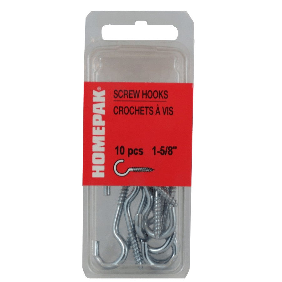10 Pack 1-5/8" #4 Zinc Screw Hooks