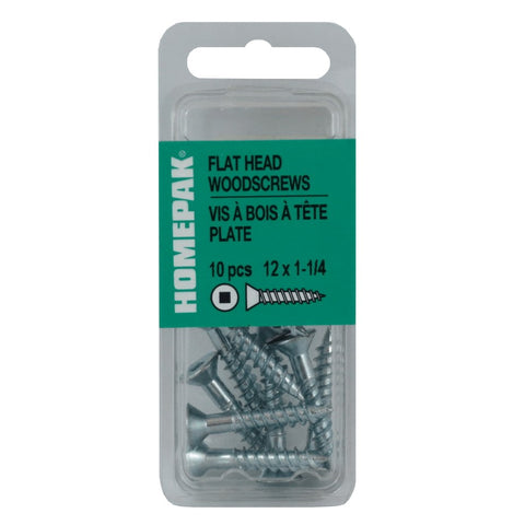 10 Pack #12 x 1-1/4" Flat Head Socket Zinc Plated Wood Screws