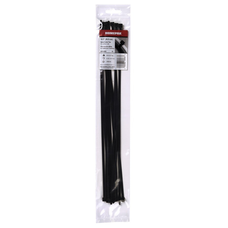 10 Pack 14-1/2" Black Cable Ties for Outdoor Use