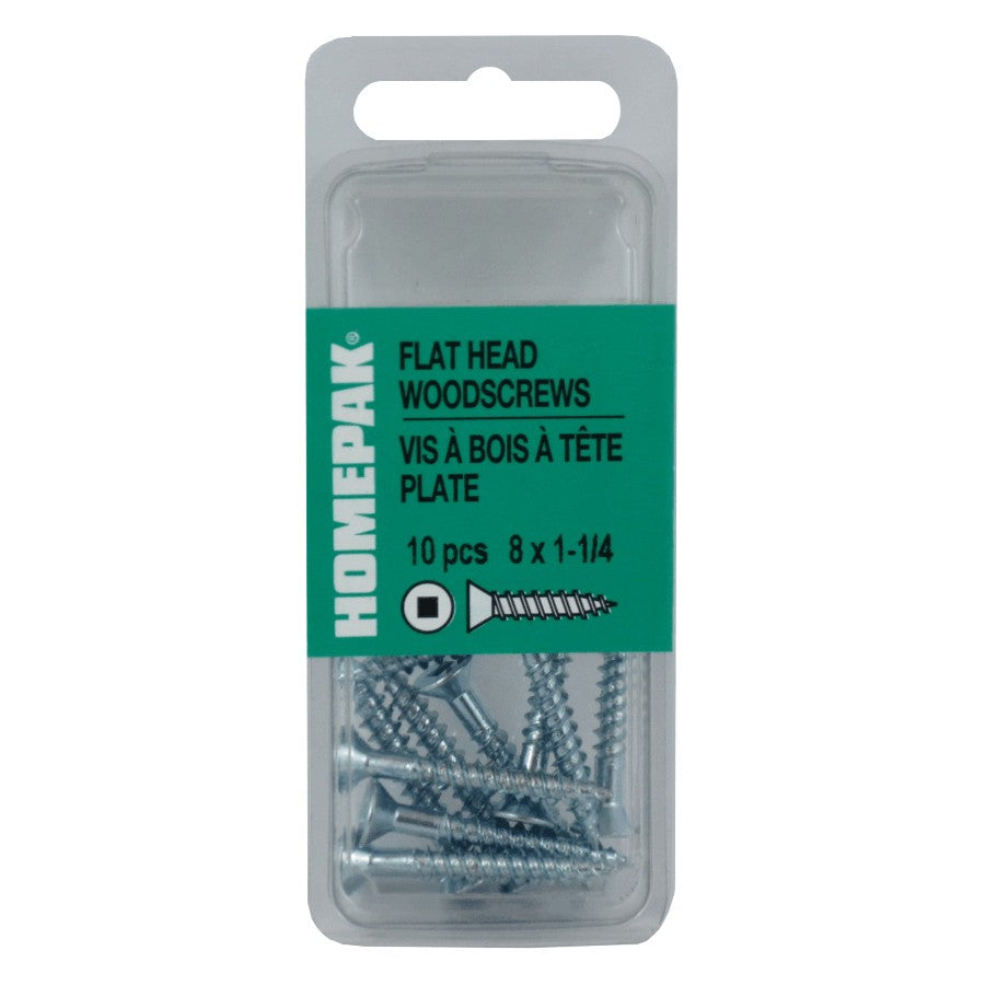 10 Pack #8 x 1-1/4" Flat Head Socket Zinc Plated Wood Screws