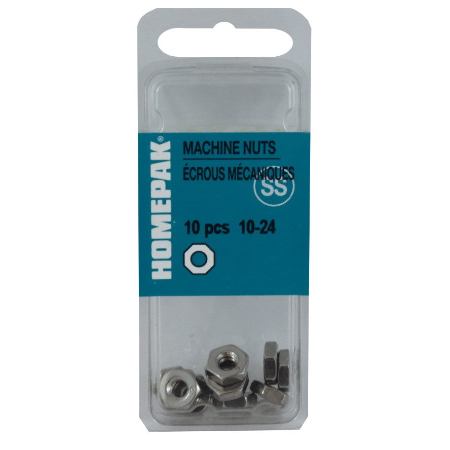Material: STAINLESS STEEL Grade: #10 Finish: N/A . Machine Nuts • Stainless steel • 10/24"