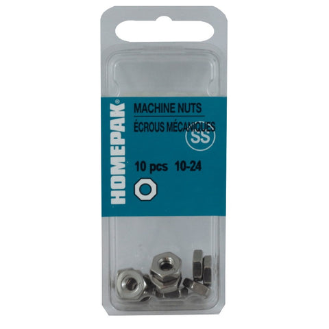 10 Pack #10-24 18.8 Stainless Steel Machine Hex Nuts