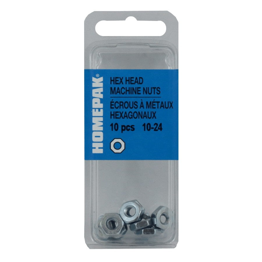 10 Pack #10-24 Zinc Plated Machine Hex Nuts