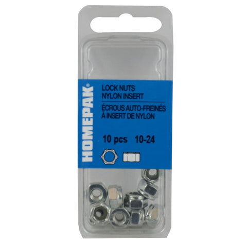 10 Pack #10-24 Zinc Plated Nylon Insert Lock Nuts