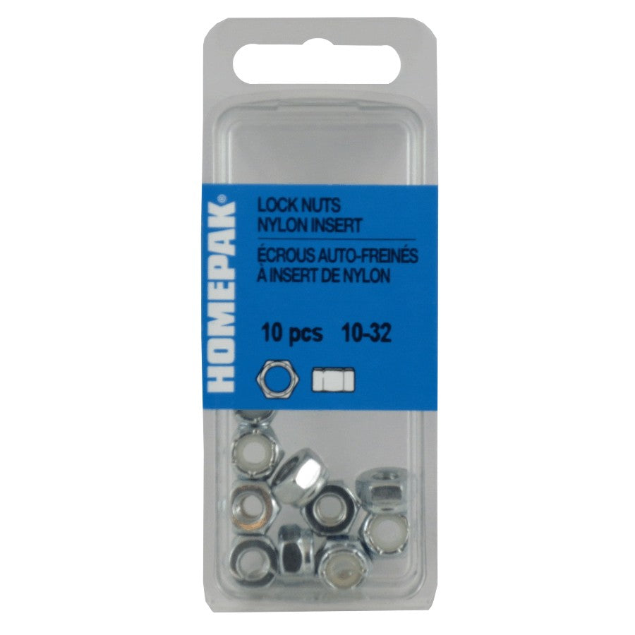 10 Pack #10-32 Zinc Plated Nylon Insert Lock Nuts