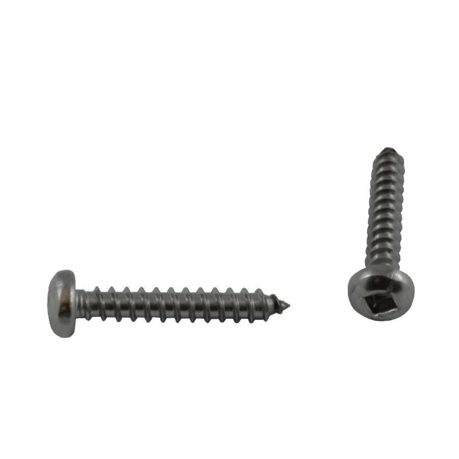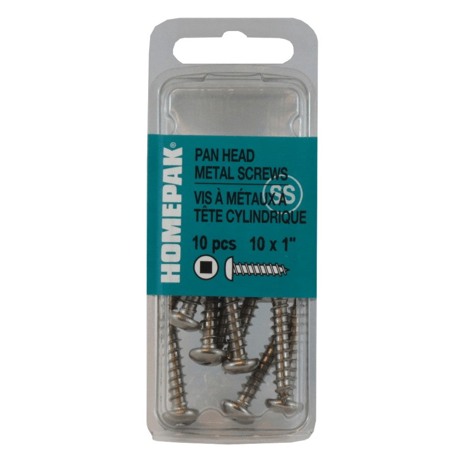 Material: STAINLESS STEEL Assembled Product Length: 1" Fastener Drive Type: ROBERTSON Finish: N/A Fastener Diameter (Imperial): #10 Fastener Length (Imperial): 1" . Sheet Metal Screws • Stainless Steel • Pan head socket