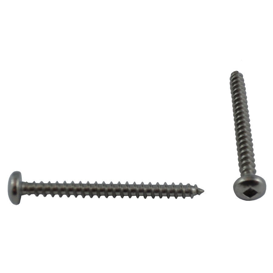 Material: STAINLESS STEEL Assembled Product Length: 2" Fastener Drive Type: ROBERTSON Finish: N/A Fastener Diameter (Imperial): #10 Fastener Length (Imperial): 2" . Sheet metal screws • Stainless Steel • Pan head socket