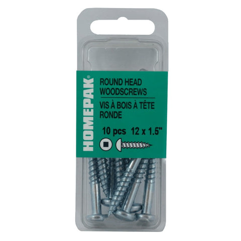 10 Pack #12 x 1-1/2" Zinc Plated Round Head Socket Wood Screws