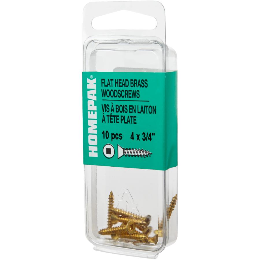 Material: BRASS Assembled Product Length: 0.75" Fastener Drive Type: ROBERTSON Finish: N/A Fastener Diameter (Imperial): #4 Fastener Length (Imperial): 0.75" . Brass wood screws • Flat head