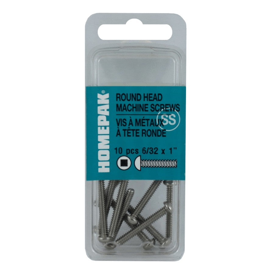 10 Pack #6-32 x 1" Stainless Steel Round Machine Screws