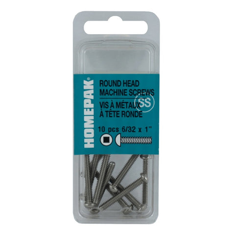 Material: STAINLESS STEEL Assembled Product Length: 1" Fastener Drive Type: ROBERTSON Fastener Diameter (Imperial): #6 Fastener Length (Imperial): 1" Fastener Length (Metric): 25.4 MM Fastener Diameter (Metric): N/A . Machine bolts • Stainless steel • Round head socket