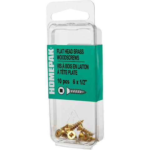10 Pack #6 x 1/2" Flat Head Socket Brass Wood Screws