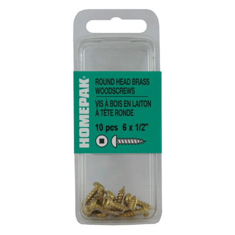 10 Pack #6 x 1/2" Round Head Socket Brass Wood Screws