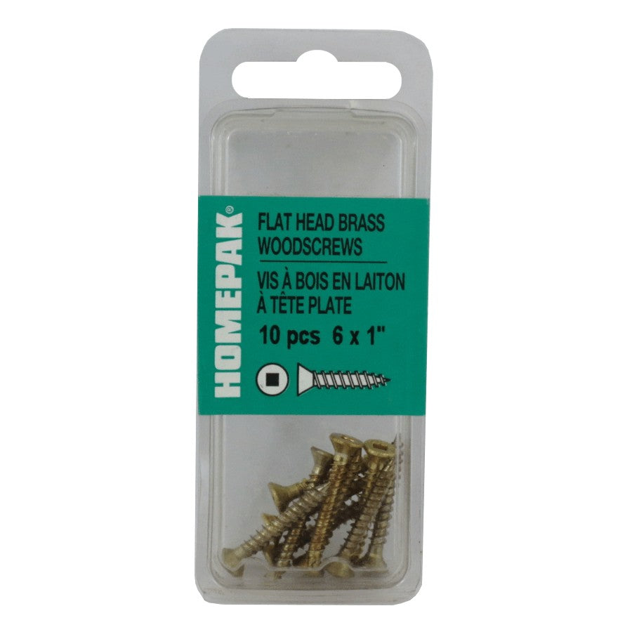 Material: BRASS Assembled Product Length: 1" Fastener Drive Type: ROBERTSON Finish: N/A Fastener Diameter (Imperial): #6 Fastener Length (Imperial): 1" . Brass wood screws • Flat head
