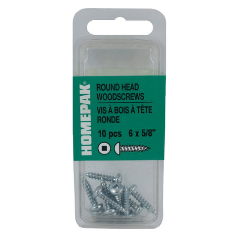 10 Pack #6 x 5/8" Zinc Plated Round Head Socket Wood Screws