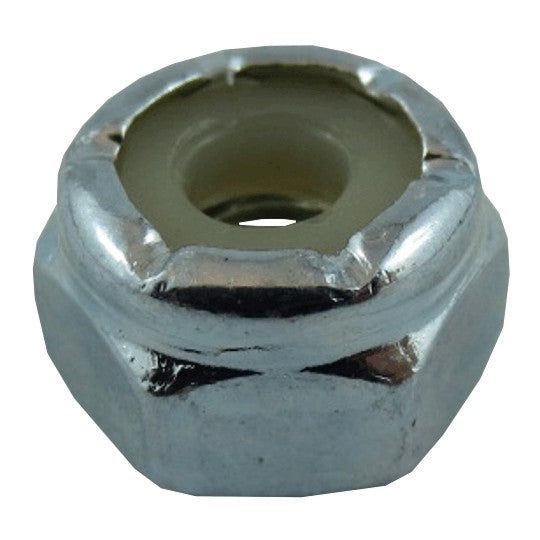 Material: STEEL Finish: ZINC PLATED Fastener Diameter (Imperial): #8 Fastener Diameter (Metric): N/A . Nylon collar prevents self-loosening • Coarse thread • Bright zinc plated