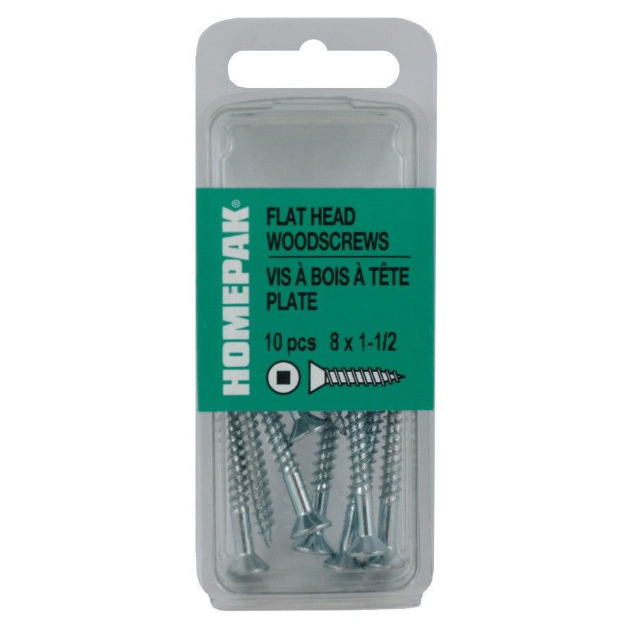 10 Pack #8 x 1-1/2" Flat Head Socket Zinc Plated Wood Screws
