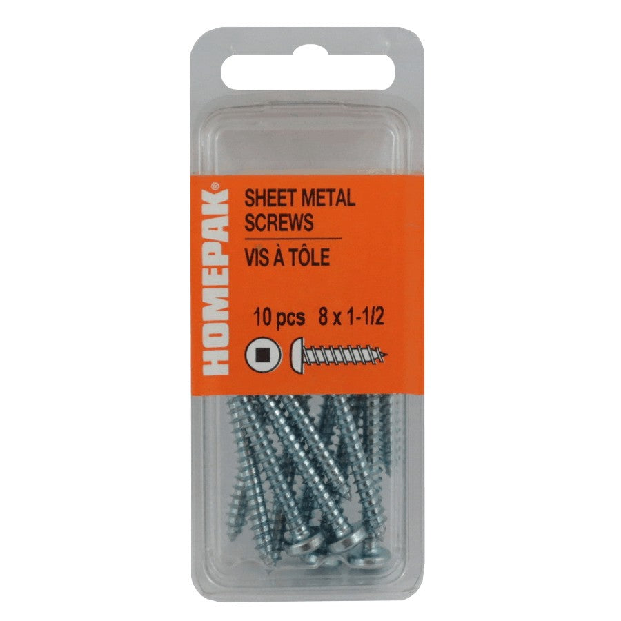 Material: STEEL Assembled Product Length: 1.5" Fastener Drive Type: ROBERTSON Finish: ZINC PLATED Fastener Diameter (Imperial): #8 Fastener Length (Imperial): 1.5" . Sheet metal screws • Pan head • Square socket drive • 10 pack