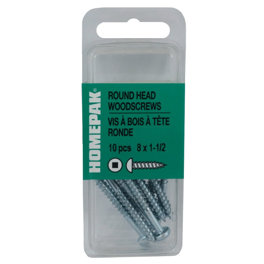 10 Pack #8 x 1-1/2" Zinc Plated Round Head Socket Wood Screws