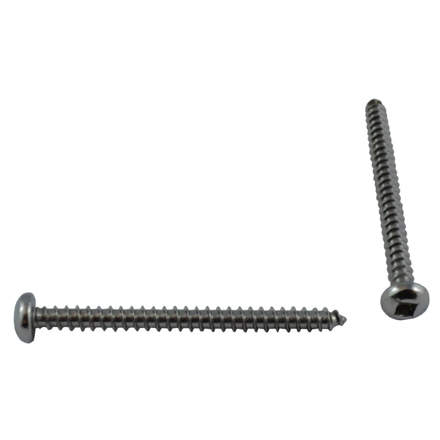 Material: STAINLESS STEEL Assembled Product Length: 2" Fastener Drive Type: ROBERTSON Finish: N/A Fastener Diameter (Imperial): #8 Fastener Length (Imperial): 2" . Sheet metal screws • Stainless Steel • Pan head socket