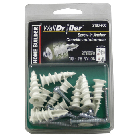 10 Pack #8L Nylon Walldriller Anchors, with Screws