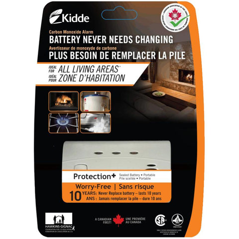 The Kidde C3010-D-CA is a 10-year sealed battery, carbon monoxide alarm which includes a digital display feature and uses electrochemical sensing technology to protect you and your family from the dangers of carbon monoxide. The C3010-D-CA alarm will automatically activate when it is attached to the mounting bracket. A continuous digital readout warns you before harmful levels are reached. At the end of alarm life, the unit will chirp, indicating the alarm is in need of replacement. A screwdriver can be used to deactivate the unit, stopping the end-of-life chirp and making it safe for disposal. This easy-to-install alarm is suitable for all living areas, is portable for easy installation on a bookshelf, night table, on a wall, etc, and has a 10-year life and limited warranty. **NOTE** battery not replaceable
