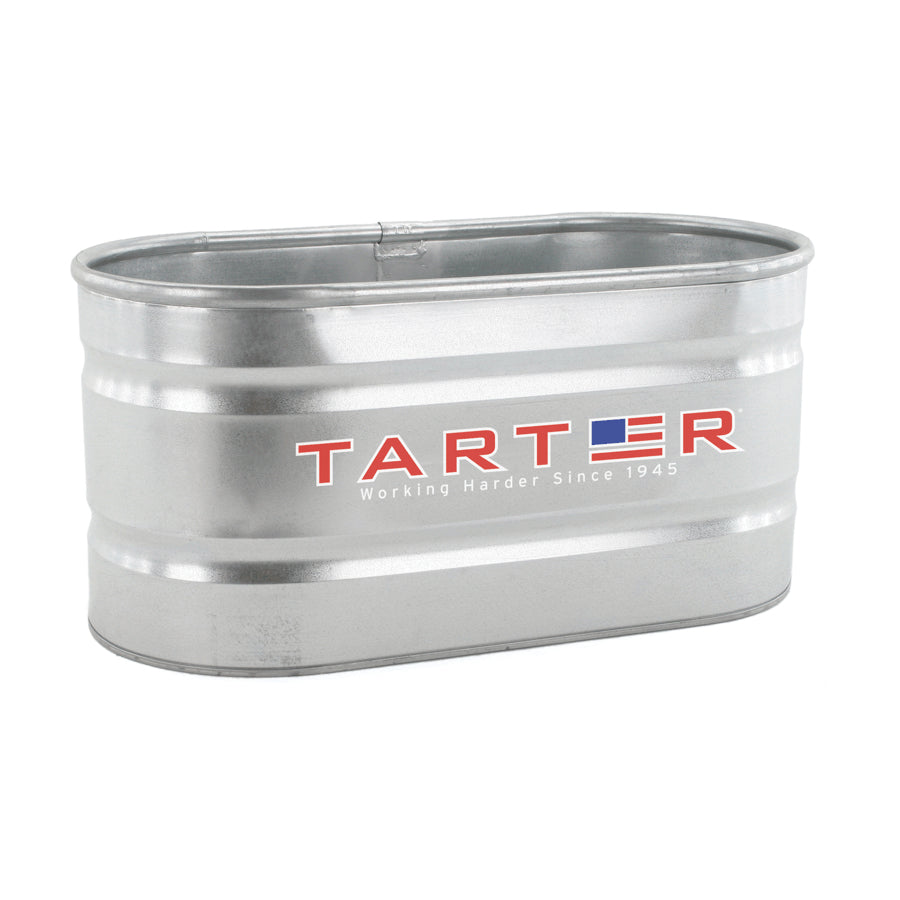 What sets Tarter Galvanized Tanks apart from the rest? They are fabricated at a manufacturing facility exclusively dedicated to the production of high quality galvanized tanks. Tarter's rigid standards and unparalleled manufacturing acumen, combined with the finest high-quality steel and outstanding value, make these the best galvanized tanks around. They feature 20-gauge galvanized bottoms and 21-gauge sides as well as a four-ply double-lock seam at the bottom sealed with Pliogrip Adhesive/Sealant Seam Sealer for a superior bond. And, they have unlimited uses. Imagine a cooler that keeps your drinks cold for hours. The perfect apple bobbing tank for the neighborhood Halloween party. Or an outdoor tub for Fido after his skunk encounter. Whatever you can dream up, Tarter's Galvanized Tanks can handle it. This 100 gallon tank measures 2' H x 2' W x 4' L.