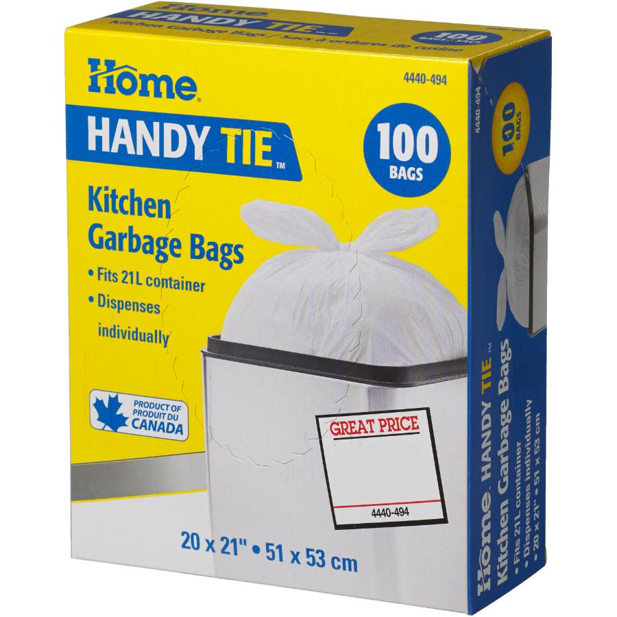 100 Pack 20" x 21" White Handy Tie Garbage Bags