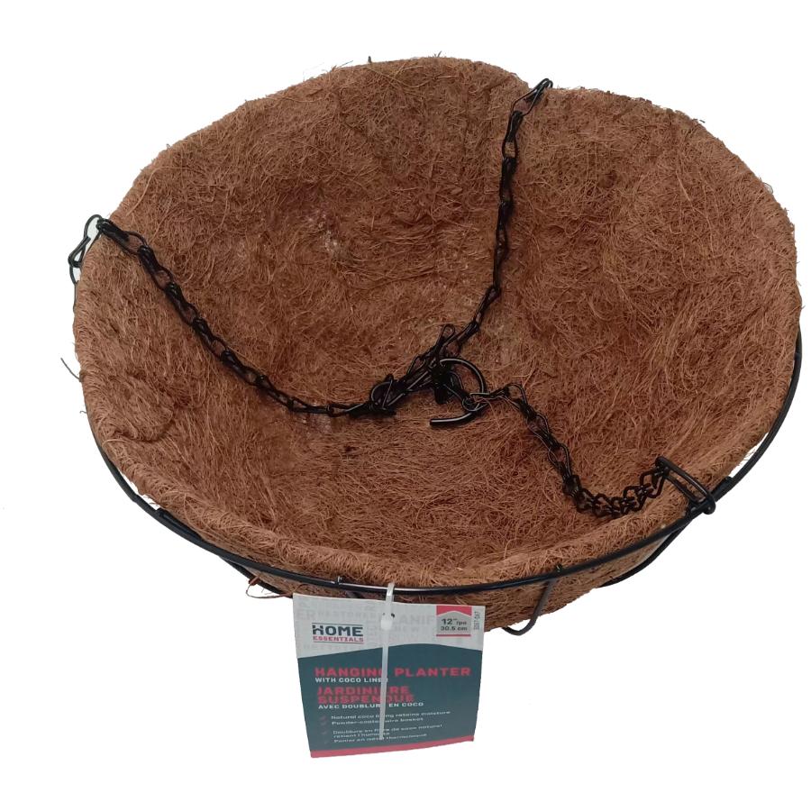 Bring colour and life to your home with this 12" wire and coco hanging planter basket. Ideal for patios, fences, entrances, and balconies. These coco lined baskets are great for hanging plants by keeping roots moist and cool. The fiber complements flowers and plants by giving it a natural look. A steel frame comes with a powder-coated finish that helps prevent rust from the outdoors and adds durability. The three-prong chain adds stability when hanging while still allowing the plants to be easily seen.
