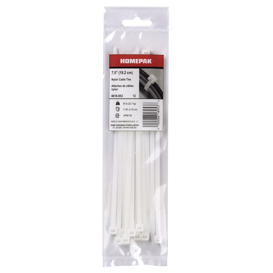 Home Hardware’s nylon cable ties provide premium bundling solutions. The one piece design helps provide added strength. They can be used for a variety of uses from bundling wires or cables, to securing devices of any kind. With a thousand and one uses, Home Hardware’s cable ties give you the secure solution you are looking for.
