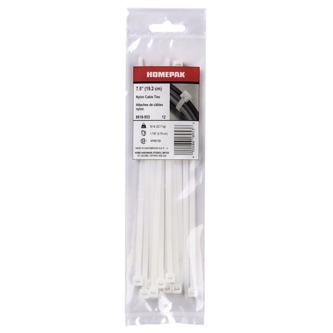 12 Pack 7" White Cable Ties