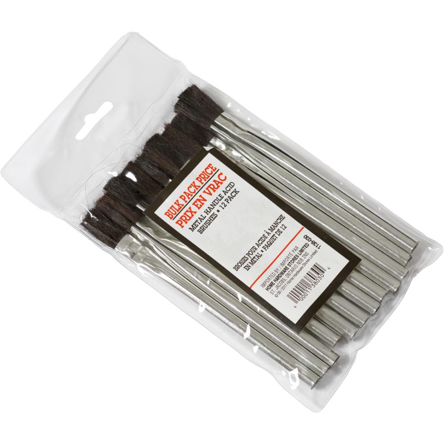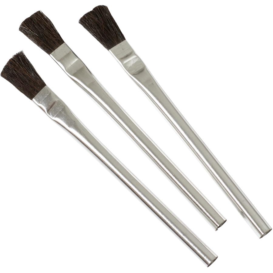 This set of acid brushes can be used to apply acids, fluxes, glues, lubricants or other substances. Horsehair bristles hold more liquid and apply it more smoothly than other types of bristles. The ferrule prevents bristles from coming loose and is made of tin, which resists water and corrosion.