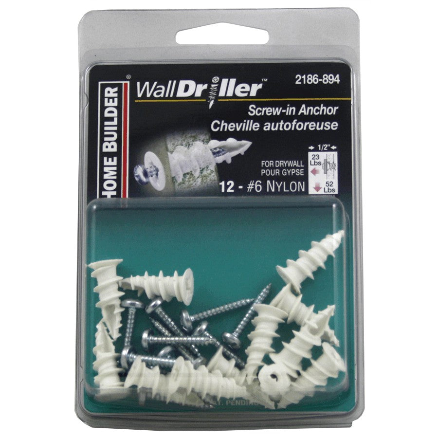 12 Pack #6 Nylon Walldriller Anchors, with Screws