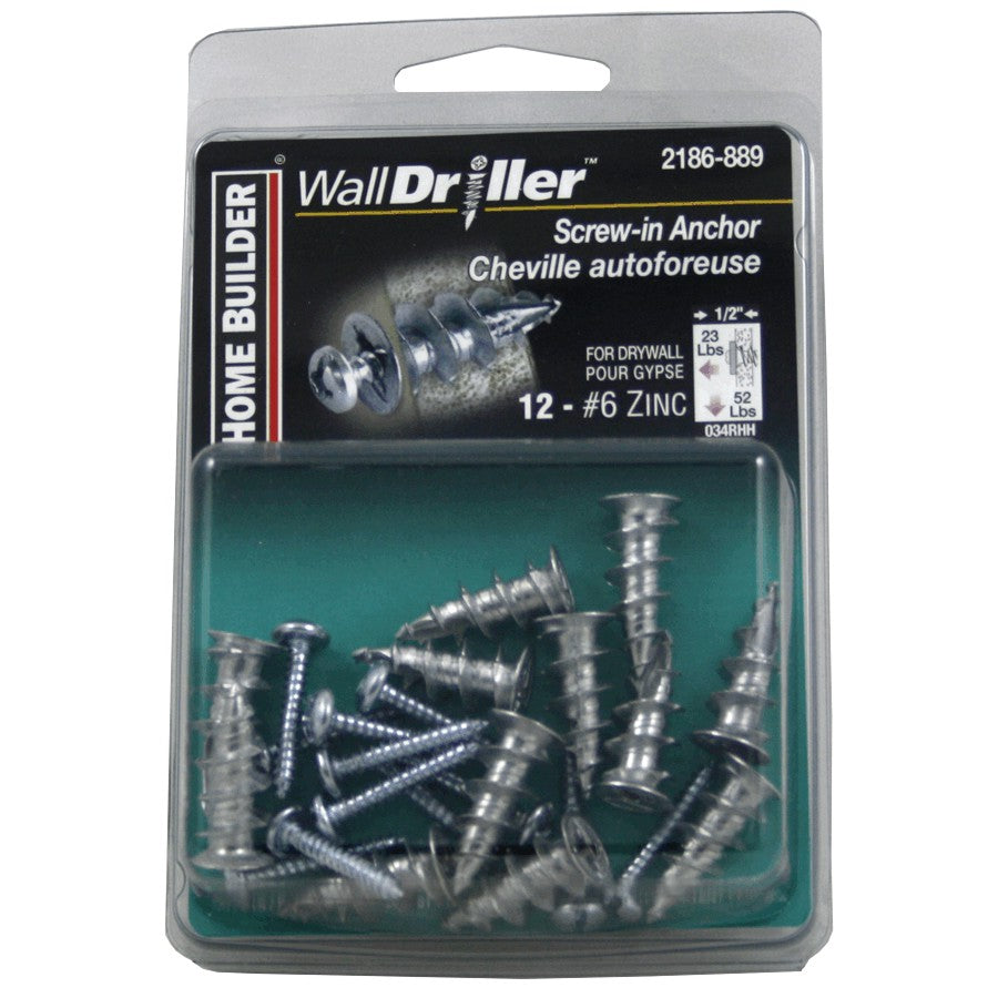 12 Pack #6 Zinc Plated Walldriller Anchors, With Screws