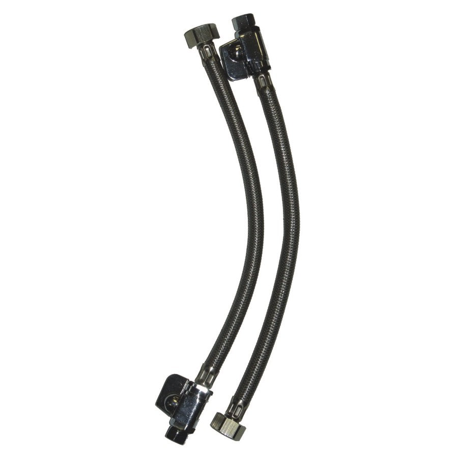 The Waterline add-a-stop faucet install kit includes: two (2) 12" faucet supply lines with 3/8" female swivel 1/4-turn ball valves.