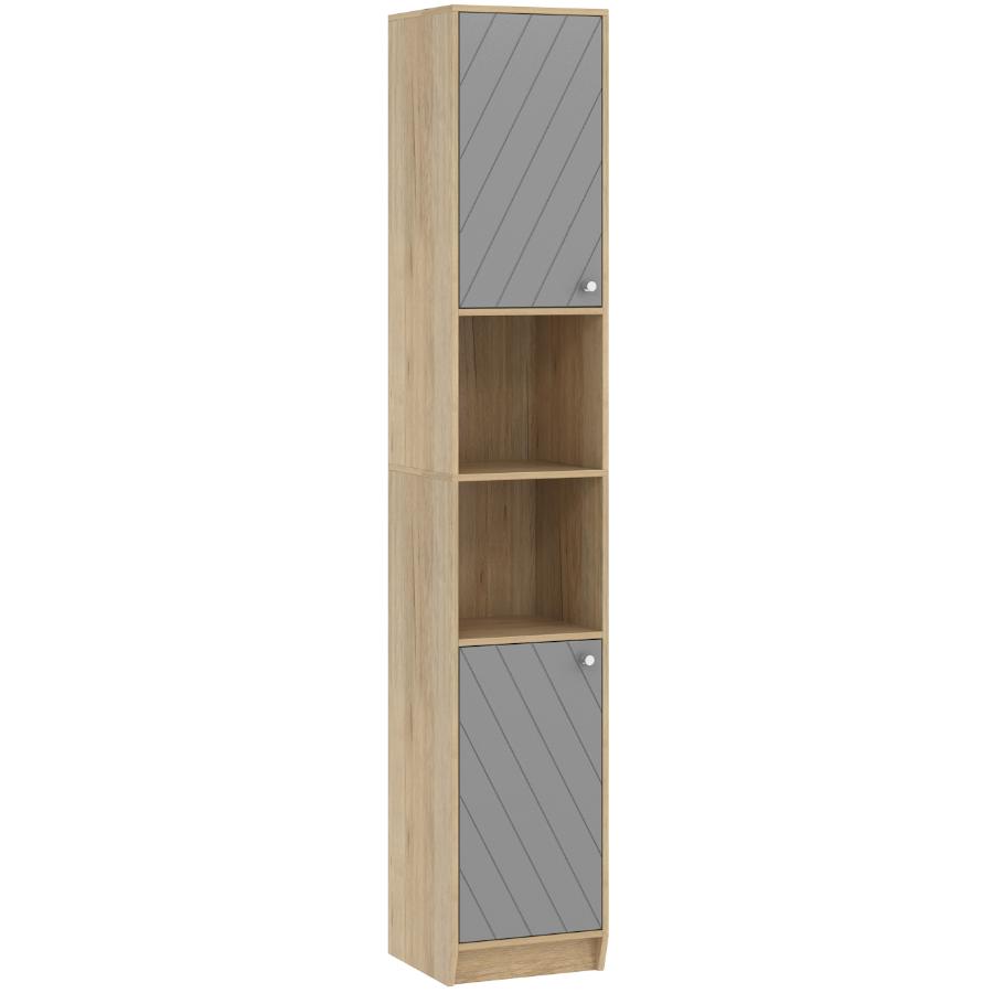 This storage cabinet with its slim silhouette stands tall and proud while providing the extra storage space needed in your bathroom or any space. The 2 open shelves are perfect for storing candles or rolled up towels, while the doors offer out of sight storage for your toiletries and bathroom items. Sized to 12” x 9” x 67” and made to maximize your space with style. The smooth wooden finish and the durable MDF wood design will complement your space for a long time.