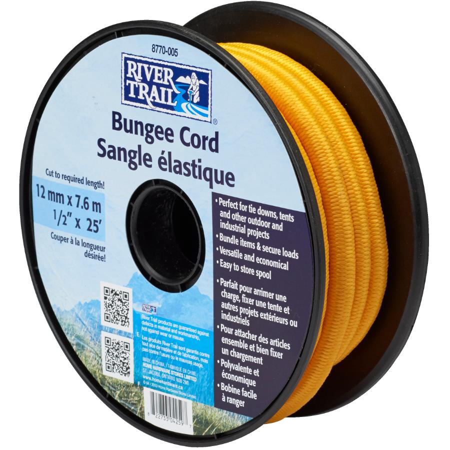 This 25' length of bungee cord will ensure your personal belongings are tightly fastened. Whether it's a tarp secured to a structure or keeping a larger object snug in the trunk of your car, this is a dependable cord. It also comes neatly wrapped around a plastic spool for easy storage.