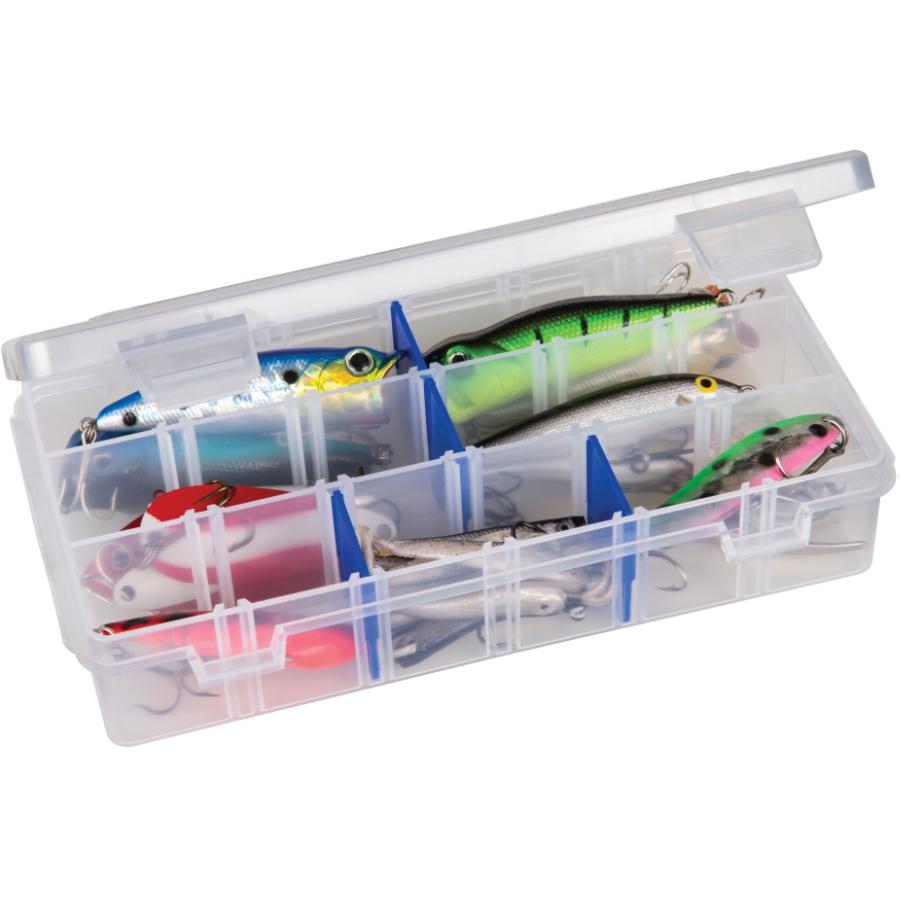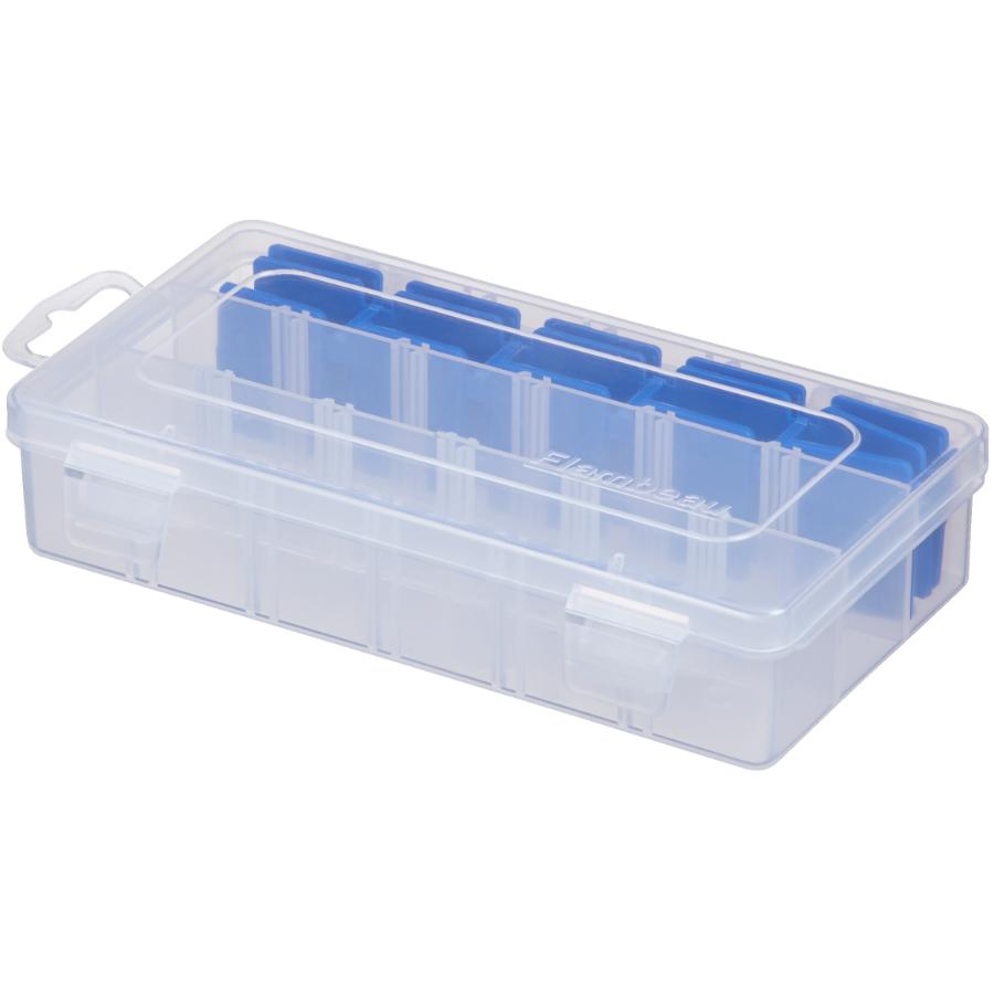 Colour Family: CLEAR Assembled Product Length: 7" Assembled Product Height: 1.5" Assembled Product Width: 4.125" . Multi-purpose, see through utility boxes • Durable no spill latches • Economical • Moulded-in tab for easy merchandising • Worm proof • 3 partitions with 15 dividers • DIMENSIONS: 7" L x 4.125" W x 1.5" D