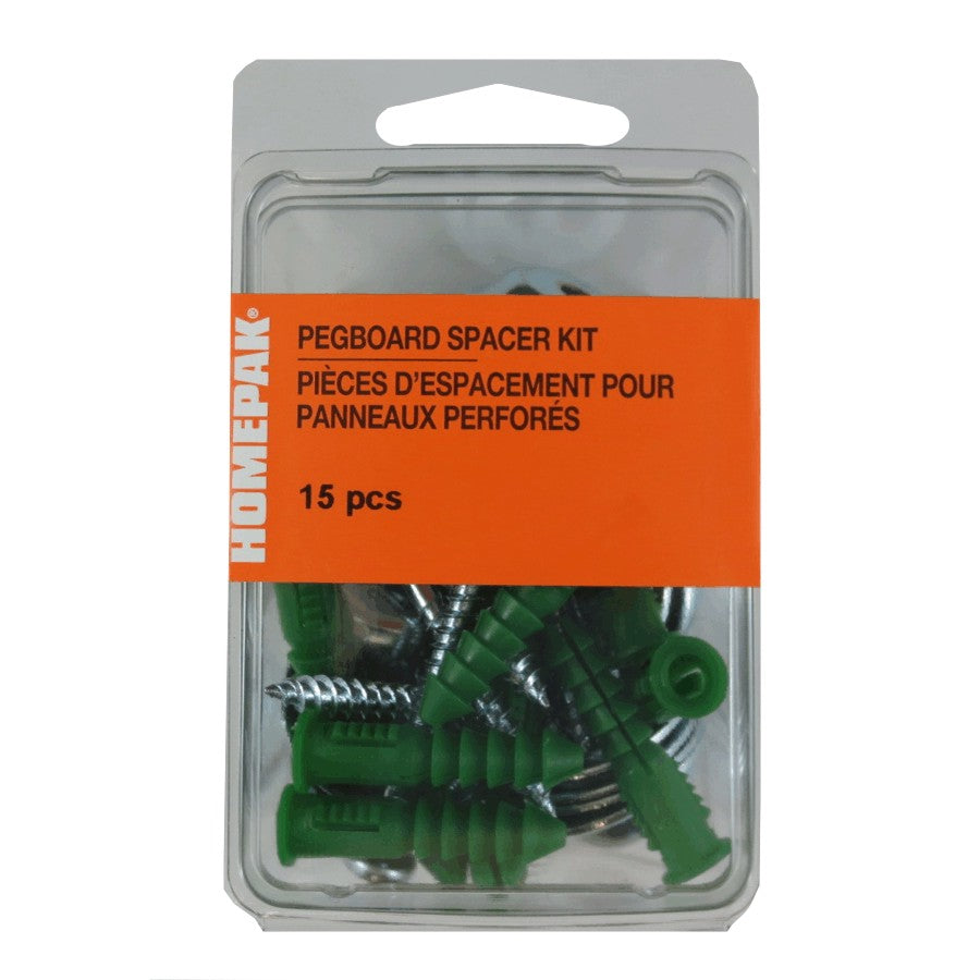 For securely mounting and spacing pegboard, or plywood up to 4' x 8' in size • INCLUDES: Wall anchors • Spacers • 2" screws