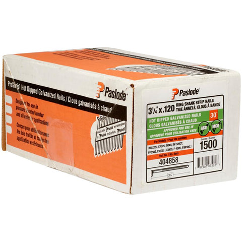 Paslode's Hot Dipped Galvanized Plus nails offer premium corrosion resistance in all pressure treated lumber such as ACQ and MCQ. The polymer coating reduces staining and streaking by 80% compared to traditional hot dipped galvanized nails.