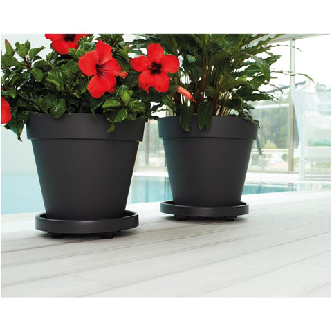 Protect your deck or floor from water run-off with the Arte Vasi plant pot saucer with wheels. It includes four wheels so you can easily move heavier plants to the desired location without lifting. Made of lightweight UV and frost-resistant plastic, this saucer is made for long lasting durability.