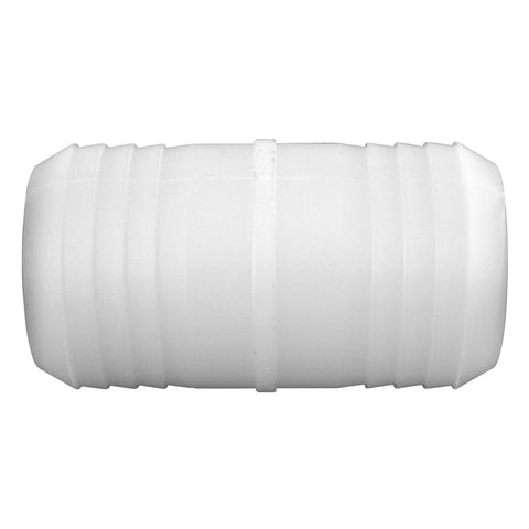 This hose mender is made of nylon and features two barbed ends to connect two hoses. It is often referred to as a splice. For a stronger connection the hoses will also need clamps to secure them to the fitting.