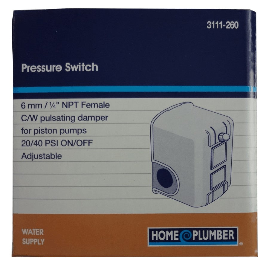 Home Hardware has all your plumbing needs for new installation and repairs. This 1/4" barb pressure switch is used to turn your pump on and of automatically and has a pulsating damper for piston pumps.