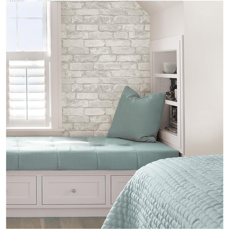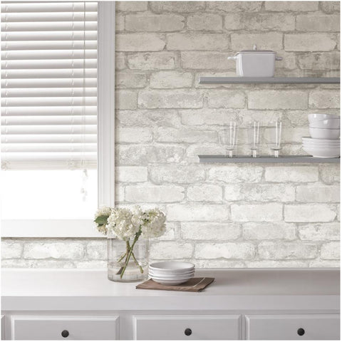 Fashion your own brick wall in a matter of minutes with this chic peel and stick wallpaper. Treated to a beautiful rustic finish, this grey and white faux brick design brings a dimensional look to walls that's both authentic and grand. Printed on a premium substrate that is completely removable, this easy to install wallpaper helps you refresh your home quickly and easily. Comes on a 20.5 in x 18 ft roll.