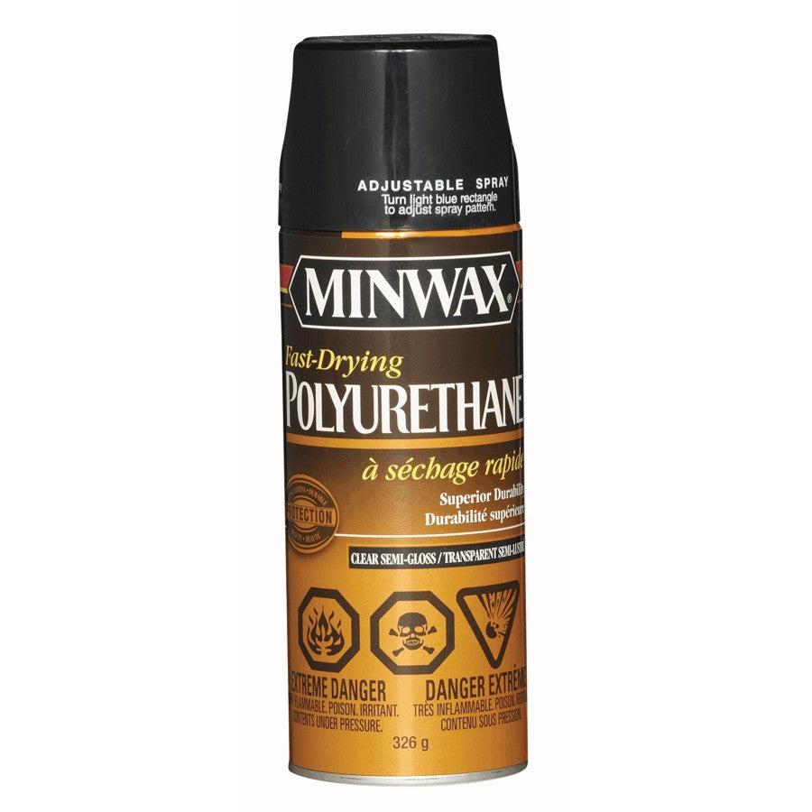 Paint Base: ALKYD/OIL/SOLVENT Finish: SEMI-GLOSS . Semi-gloss finish • Among the most durable of protective coatings, Minwax fast-drying polyurethane offers exceptionally long-lasting beauty on both finished and unfinished wood • Minwax fast-drying polyurethane is a clear, hard finish that dries fast to protect and beautify interior wood surfaces such as furniture, cabinets, molding, and doors • Minwax fast-drying polyurethane's long-lasting protective finish makes it ideal for use on hardwood, softwood, and parquet • Can be used for hard to finish pieces such as shutters, frames, trim, crafts, small projects, etc.